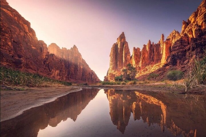 Experience the stunning Wadi Al Disah canyon from Tabuk. Explore dramatic cliffs, desert landscapes, and scenic valleys on a guided adventure.