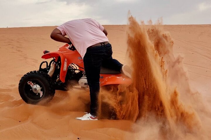 Riyadh Desert Tour includes convenient pick-up from a conveniently located meeting point, so you won’t have to drive yourself. Take a ride into the desert in the comfort of an air-conditioned vehicle. Dive into the dramatic sand dunes and experience a dune-bashing adventure on a quad bike. Taking a four-wheel motorbike allows you to focus on the beautiful desert views. ( 30-40 min ) Next, swap four wheels for four legs when you meet your Arabian camel for a leisurely safari. Enjoy the peace and quiet as you make the most of this age-old form of transport.(30-40 min ) The whole tour lasts around 3-4 hours and you’ll have time to stop for refreshments along the way. End with a comfy transfer back to the pick up location.